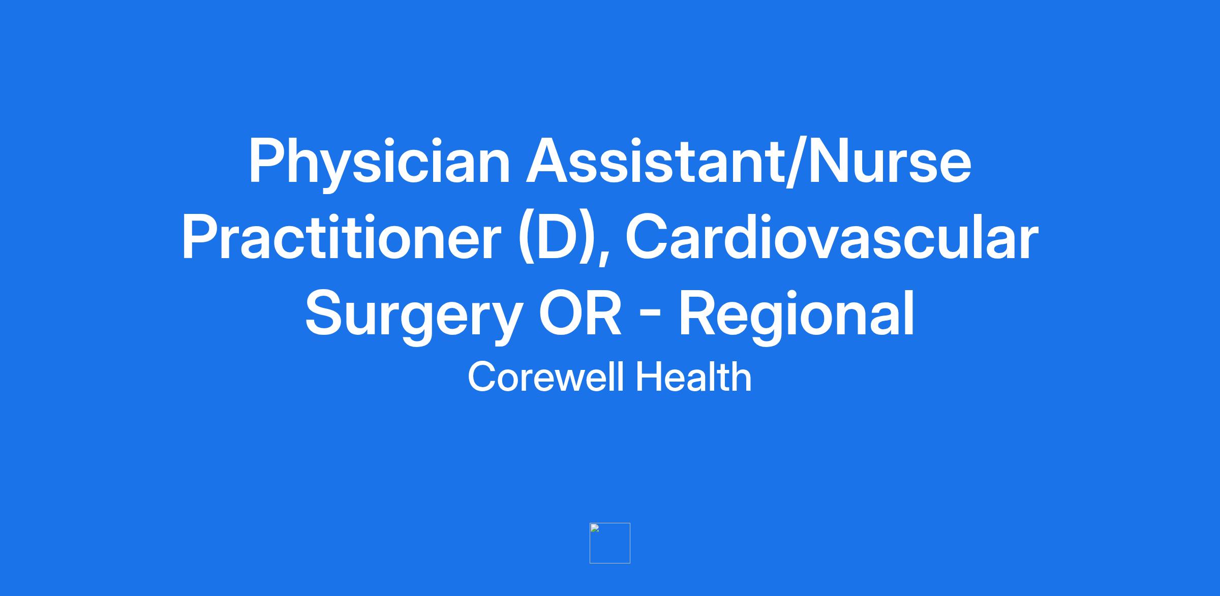Physician Assistant/Nurse Practitioner (D), Cardiovascular Surgery OR - Regional