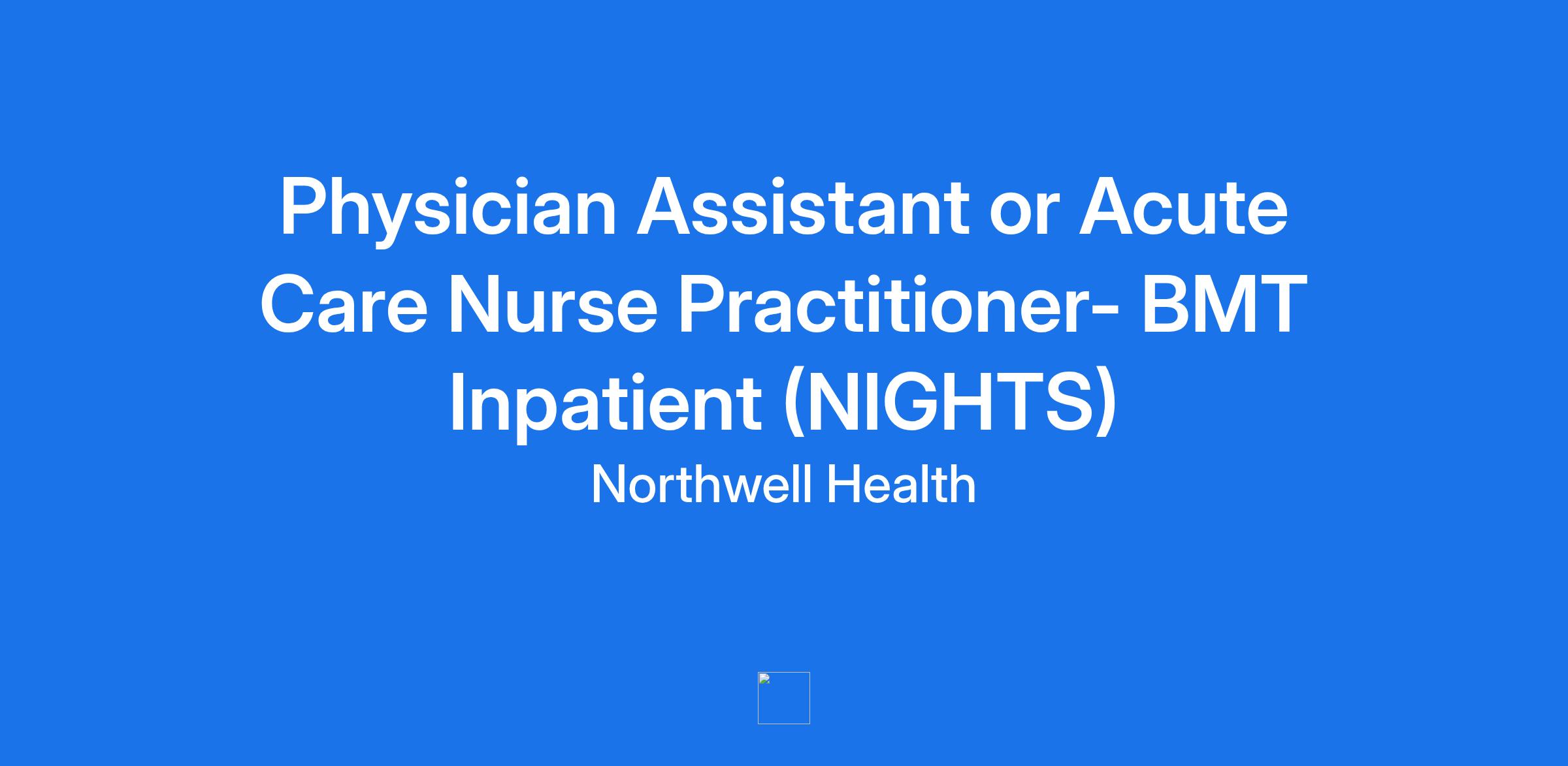 Physician Assistant or Acute Care Nurse Practitioner- BMT Inpatient (NIGHTS)