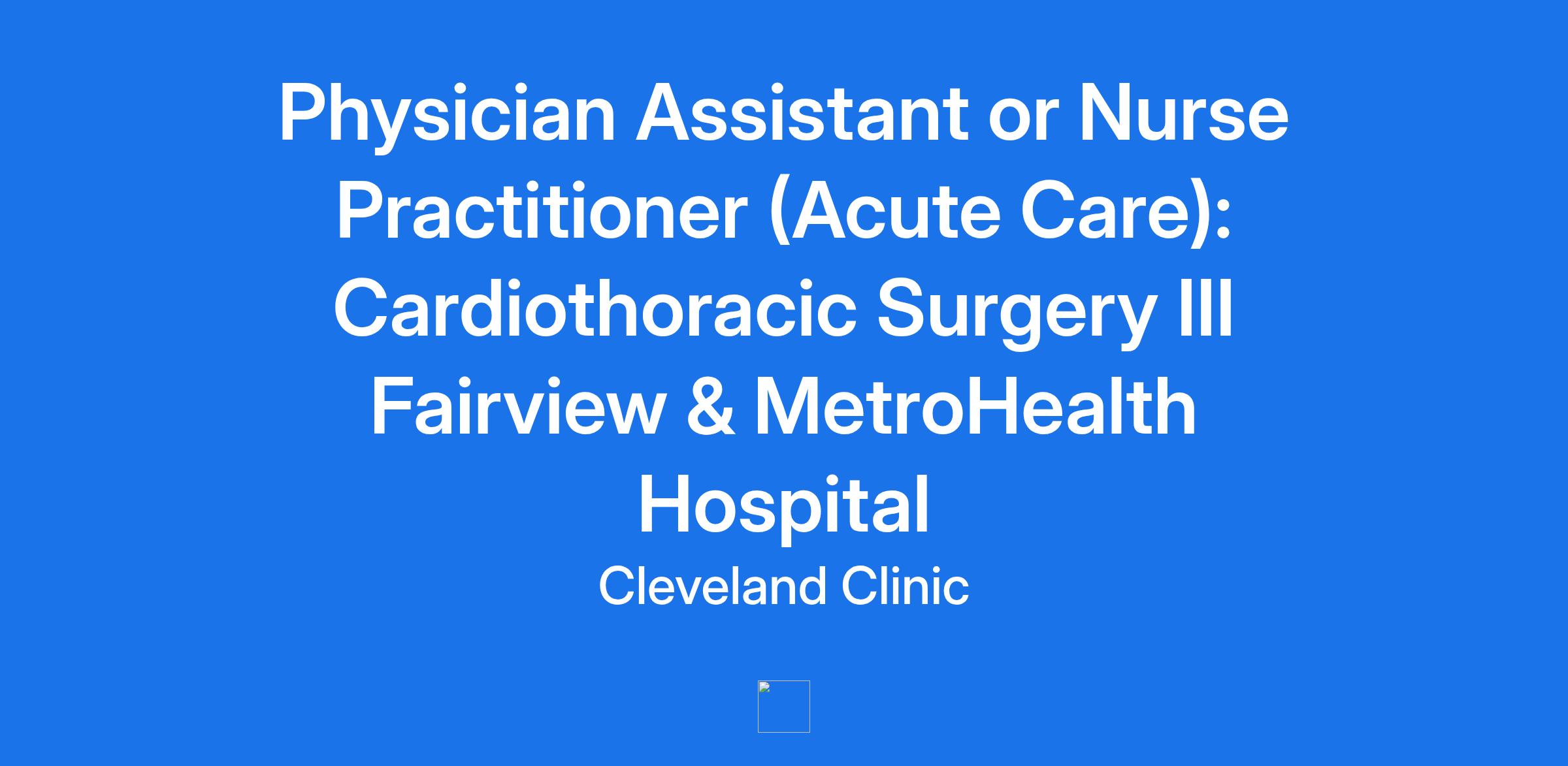 Physician Assistant or Nurse Practitioner (Acute Care): Cardiothoracic Surgery III Fairview & MetroHealth Hospital