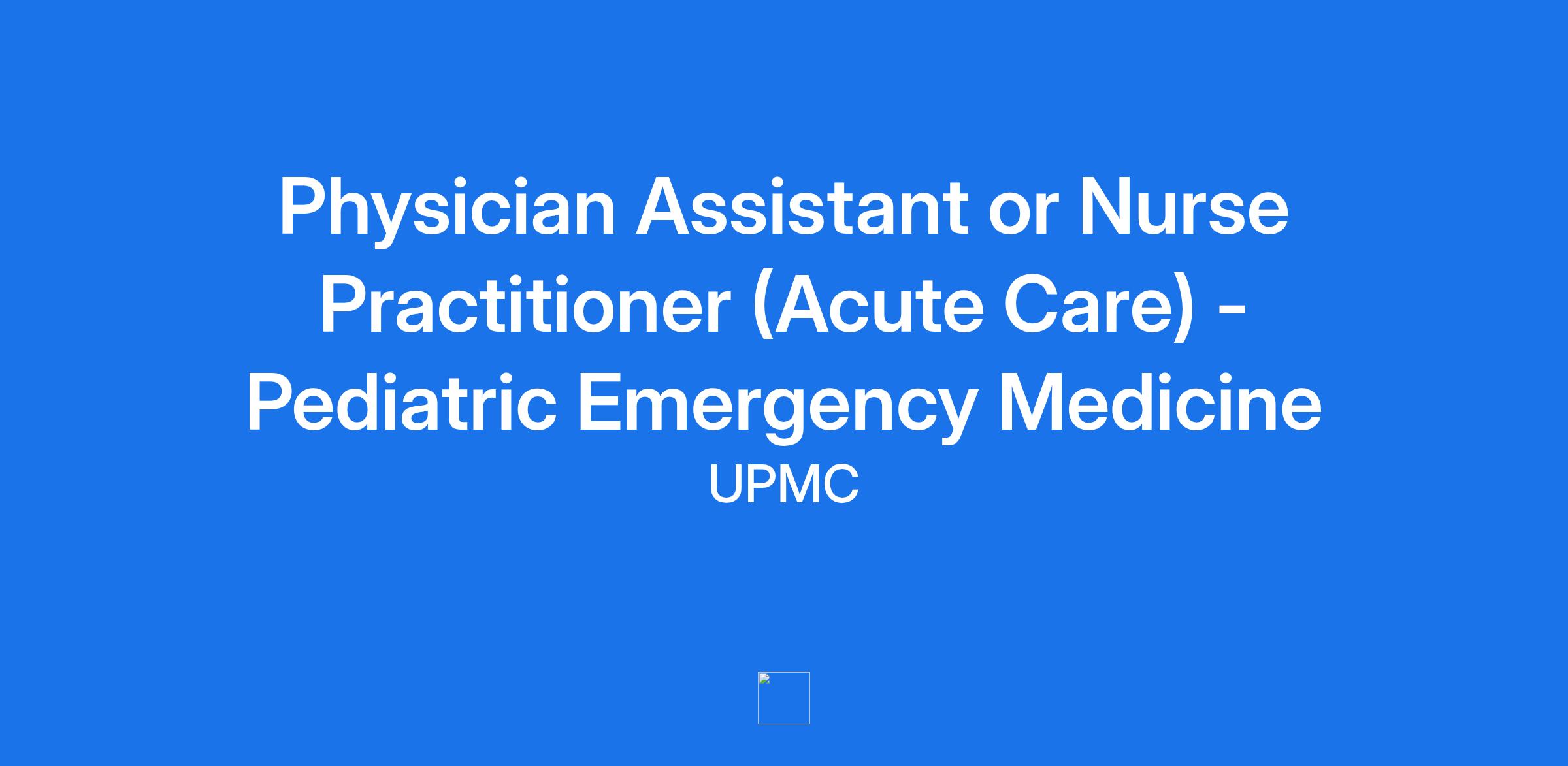 Physician Assistant or Nurse Practitioner (Acute Care) - Pediatric Emergency Medicine