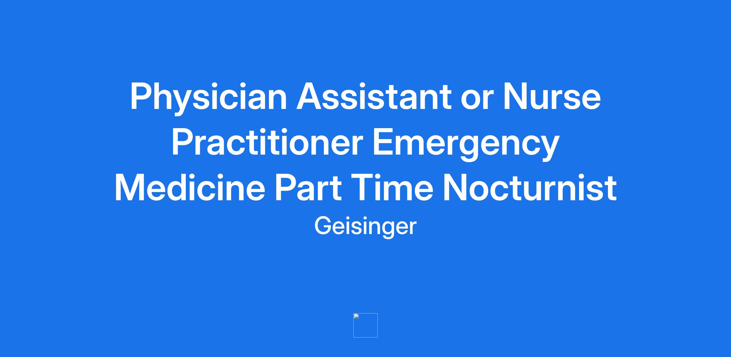 Geisinger is seeking an experienced physician assistant or nurse practitioner to join the Geisinger Northeast Department of Emergency Medicine as a part-time nocturnist in Wilkes-Barre, Pa.