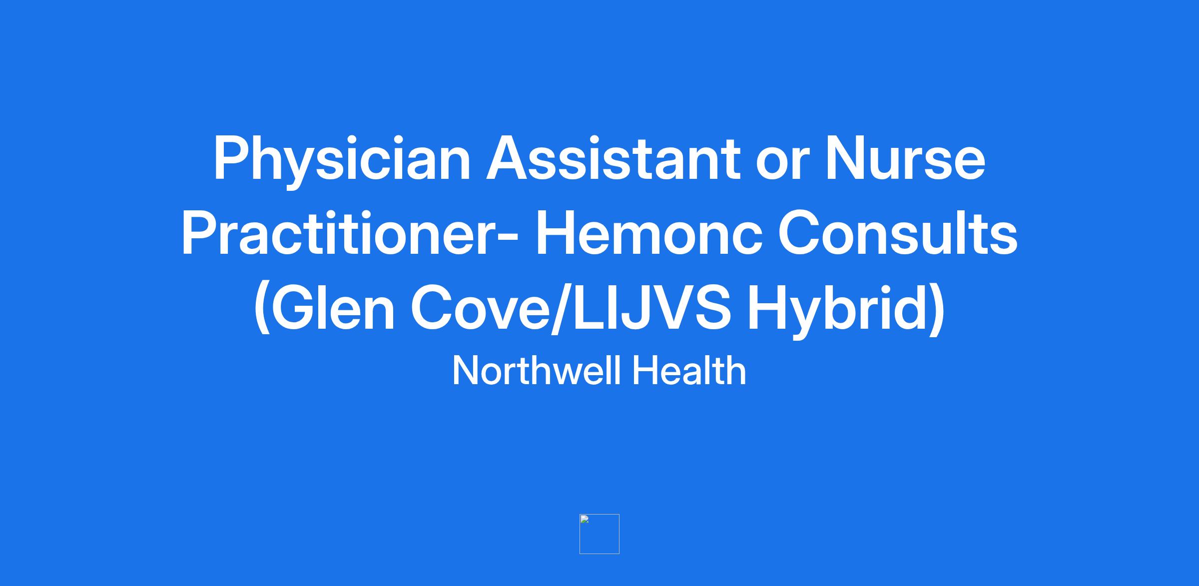 Physician Assistant or Nurse Practitioner- Hemonc Consults (Glen Cove/LIJVS Hybrid)
