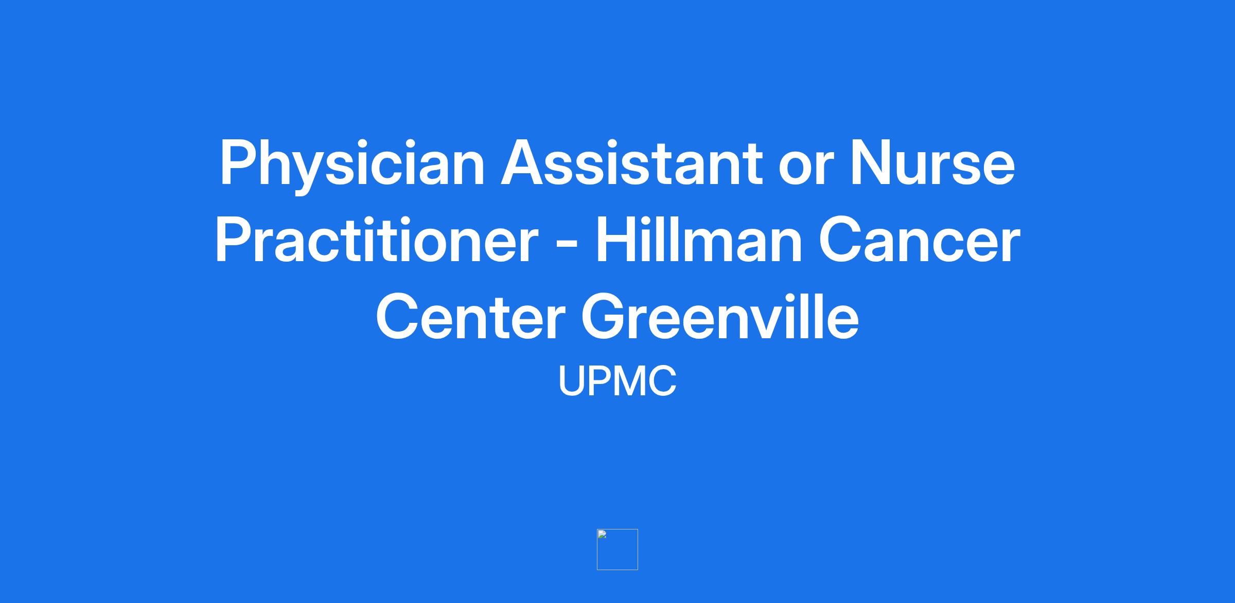 Physician Assistant or Nurse Practitioner - Hillman Cancer Center Greenville