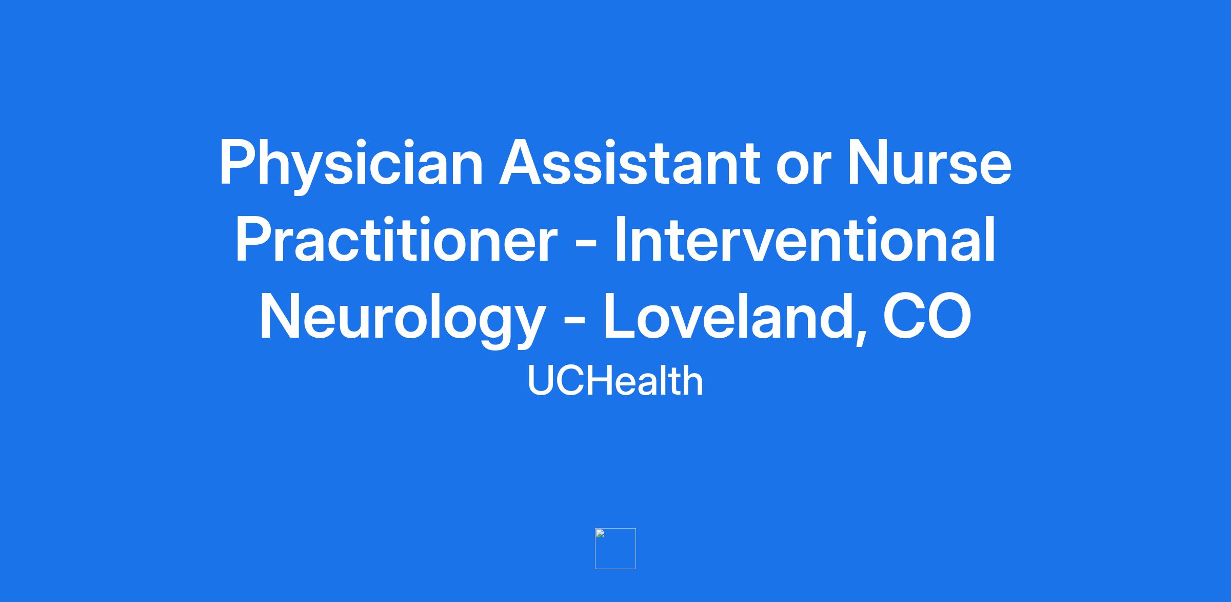 Physician Assistant or Nurse Practitioner - Interventional Neurology - Loveland, CO