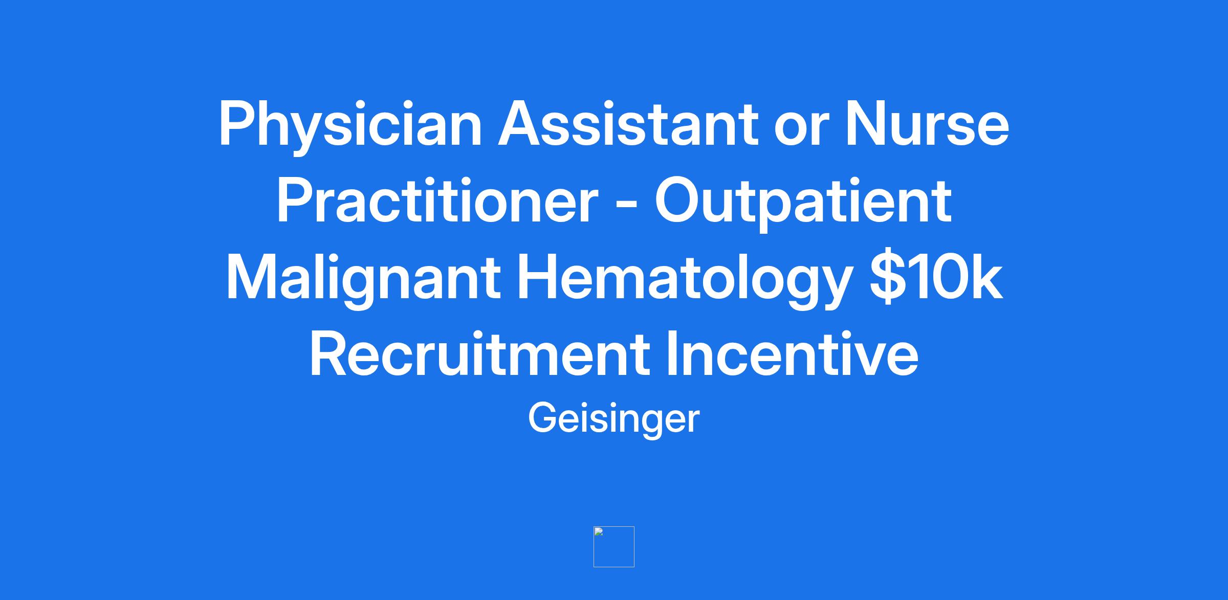 Physician Assistant or Nurse Practitioner - Outpatient Malignant Hematology $10k Recruitment Incentive