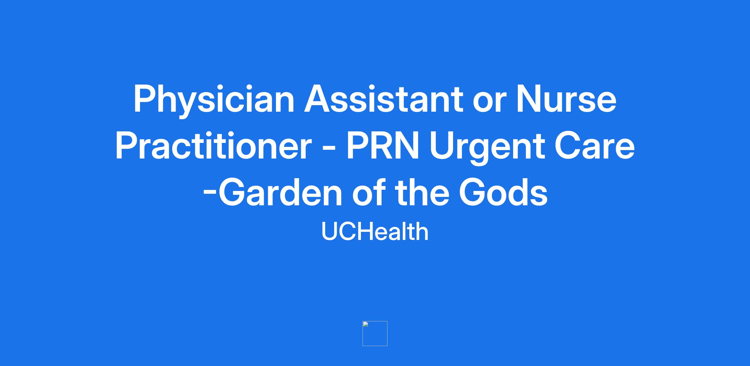 Physician Assistant or Nurse Practitioner - PRN Urgent Care -Garden of the Gods