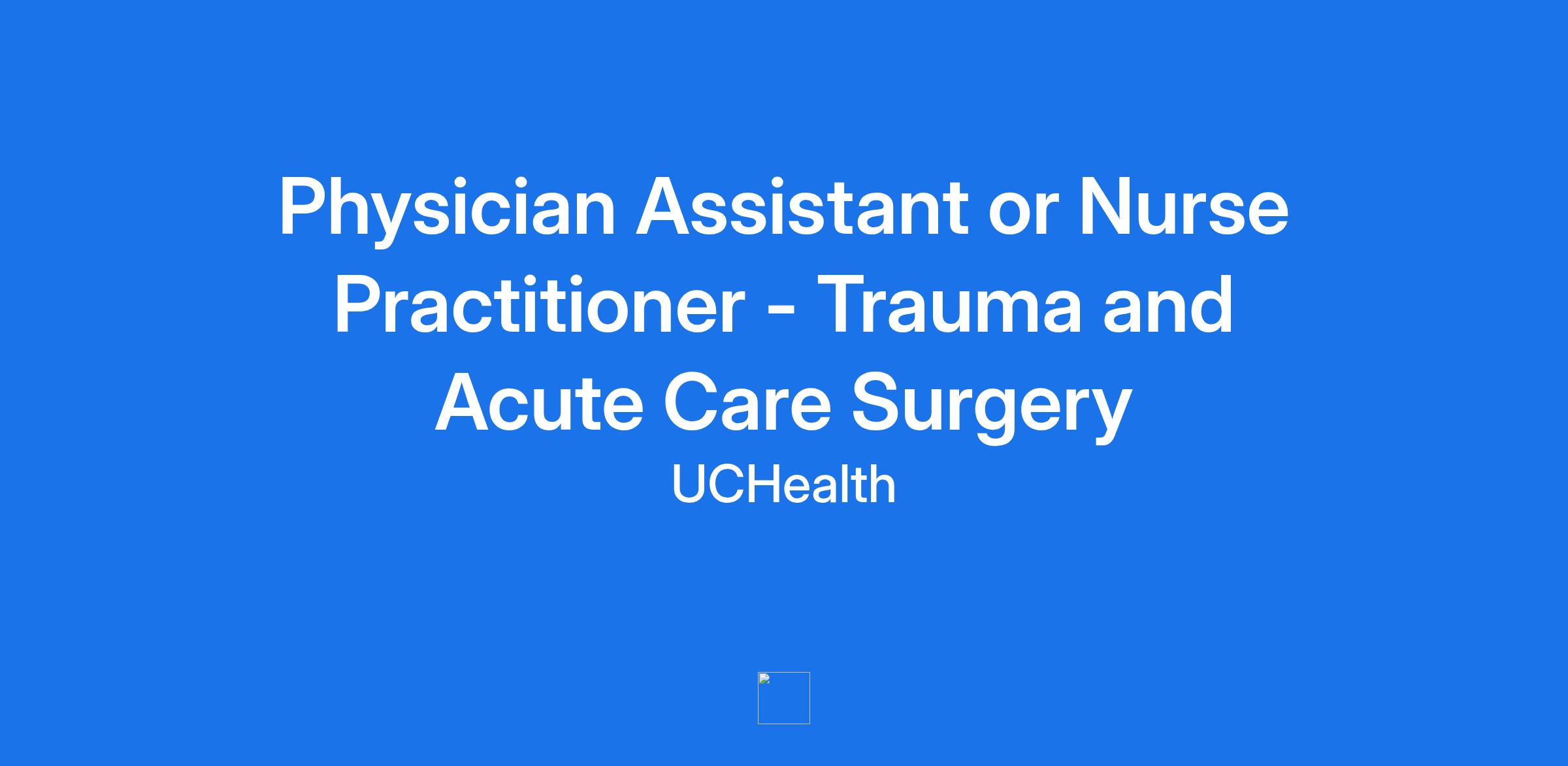 Physician Assistant or Nurse Practitioner - Trauma and Acute Care Surgery