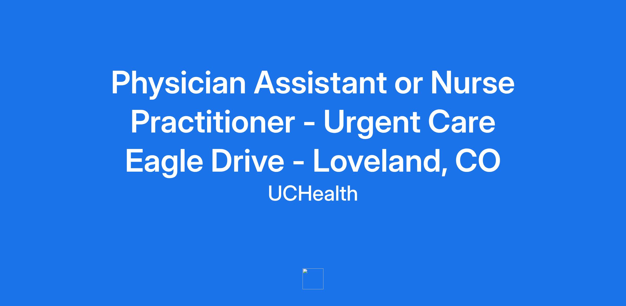 Physician Assistant or Nurse Practitioner - Urgent Care Eagle Drive - Loveland, CO