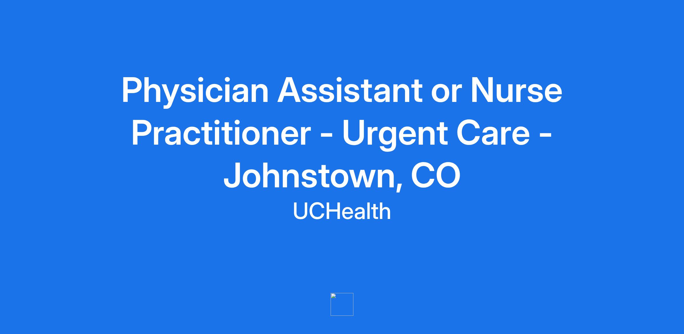 UCHealth Medical Group and the UCHealth Urgent Care team in Johnstown, CO are ready to welcome a Physician Assistant or Nurse Practitionerto their team. The ideal candidate will be enthusiastic, interested in working full-time and focused on excellent patient care. At UCHealth, we believe each person is extraordinary, and together, we make extraordinary possible.