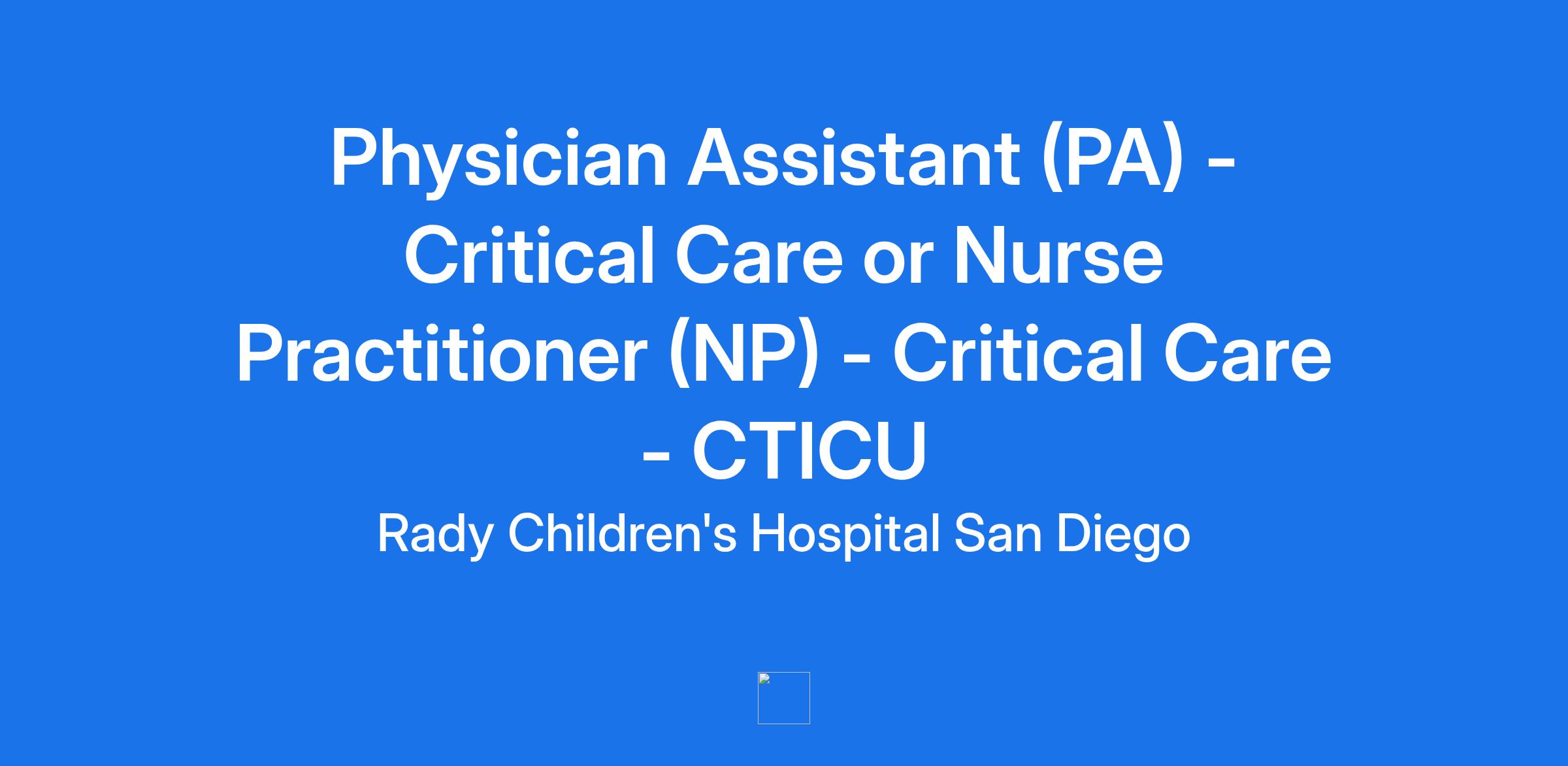 Physician Assistant (PA) - Critical Care or Nurse Practitioner (NP) - Critical Care - CTICU