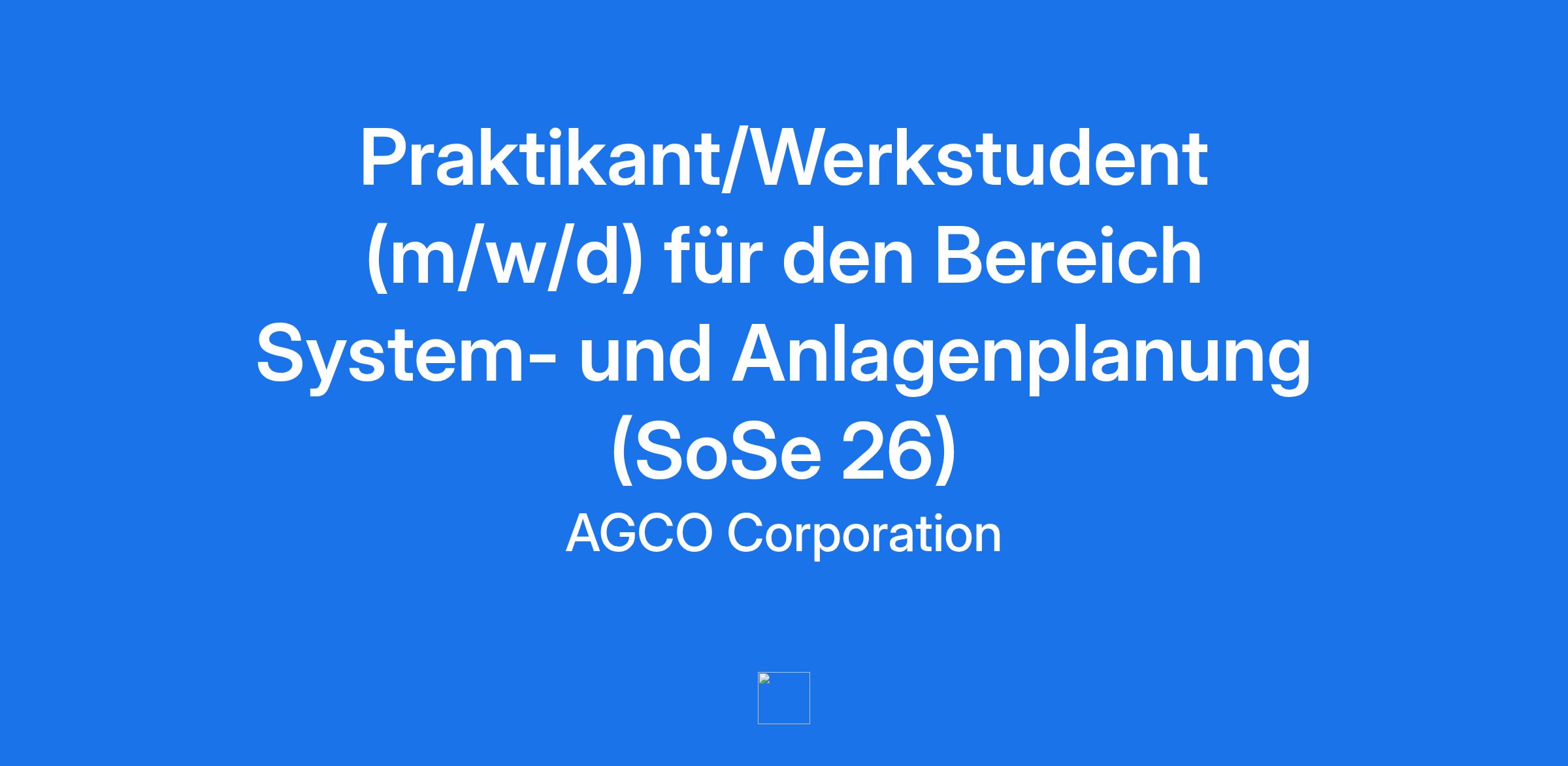 Praktikant/Werkstudent (m/w/d) für den Bereich System- und Anlagenplanung (SoSe 26)
