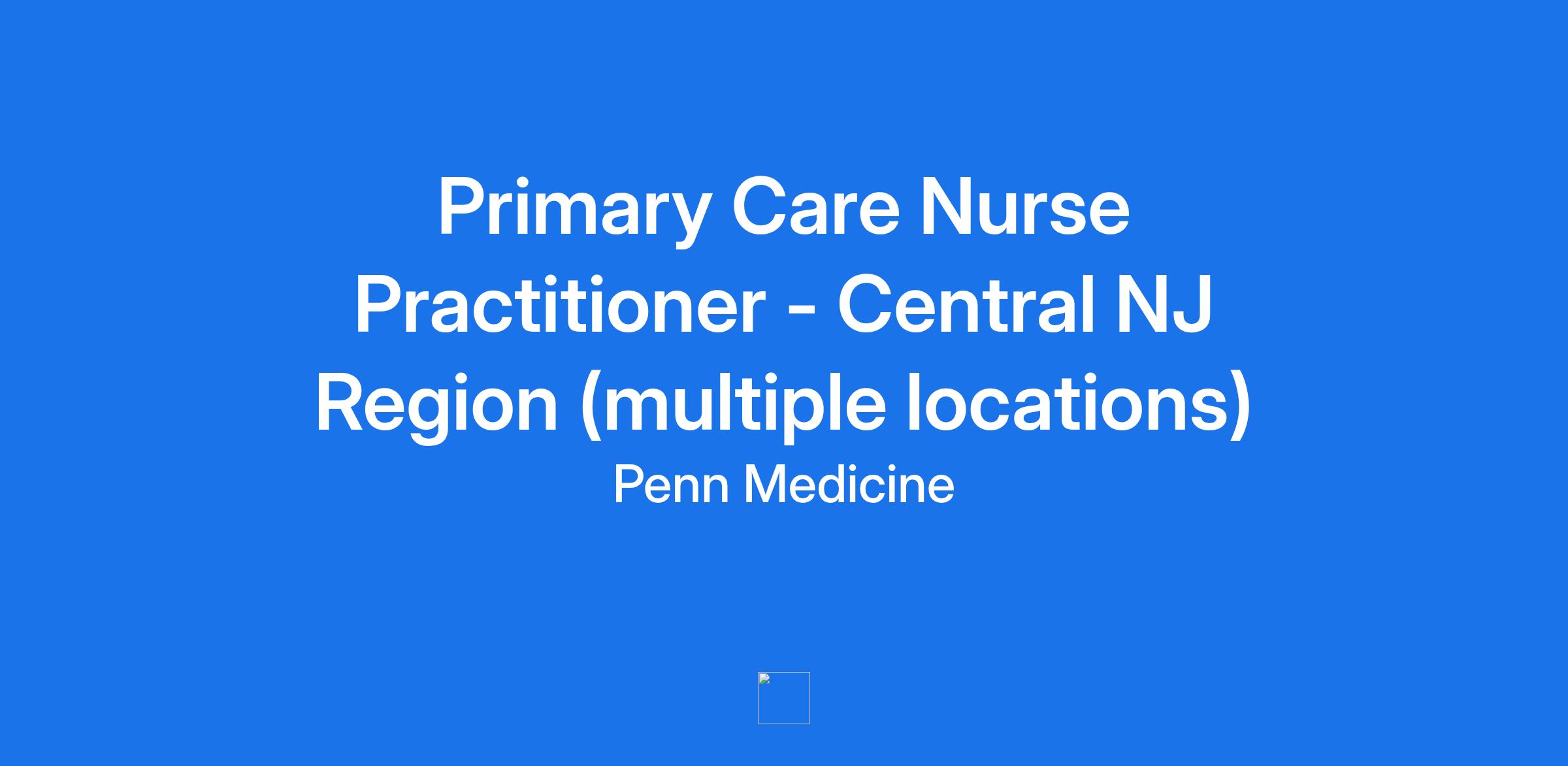 Primary Care Nurse Practitioner - Central NJ Region (multiple locations)