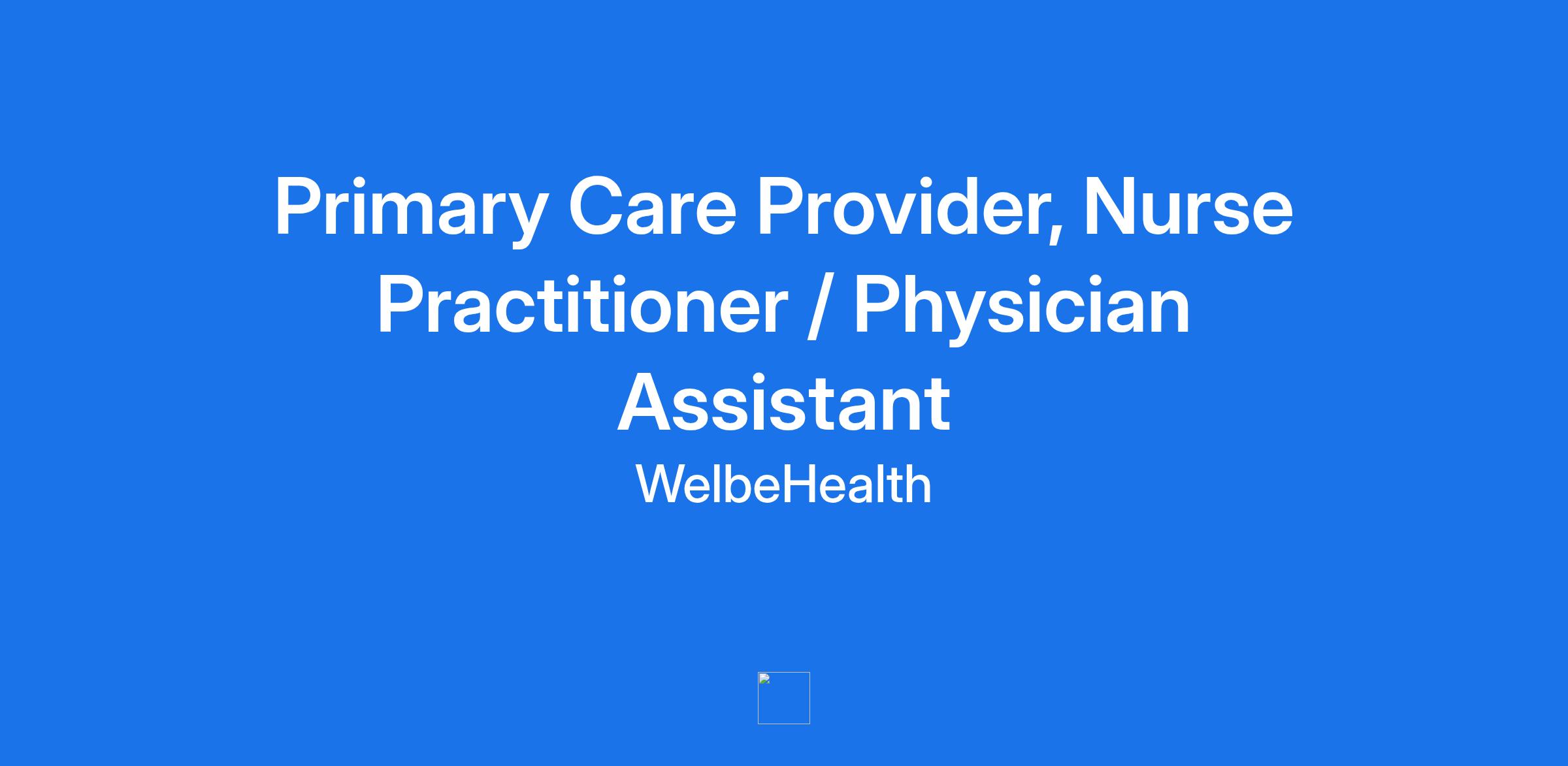 Primary Care Provider, Nurse Practitioner / Physician Assistant