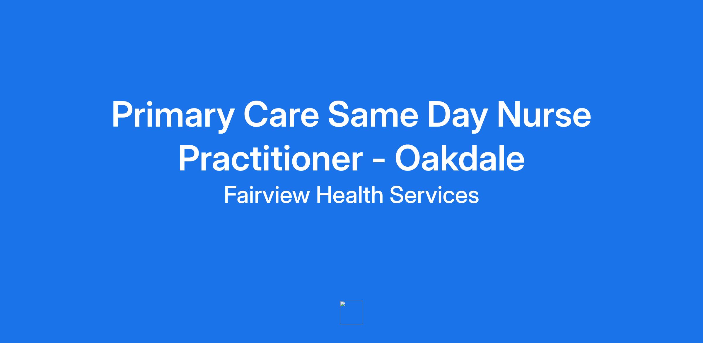 Primary Care Same Day Nurse Practitioner - Oakdale