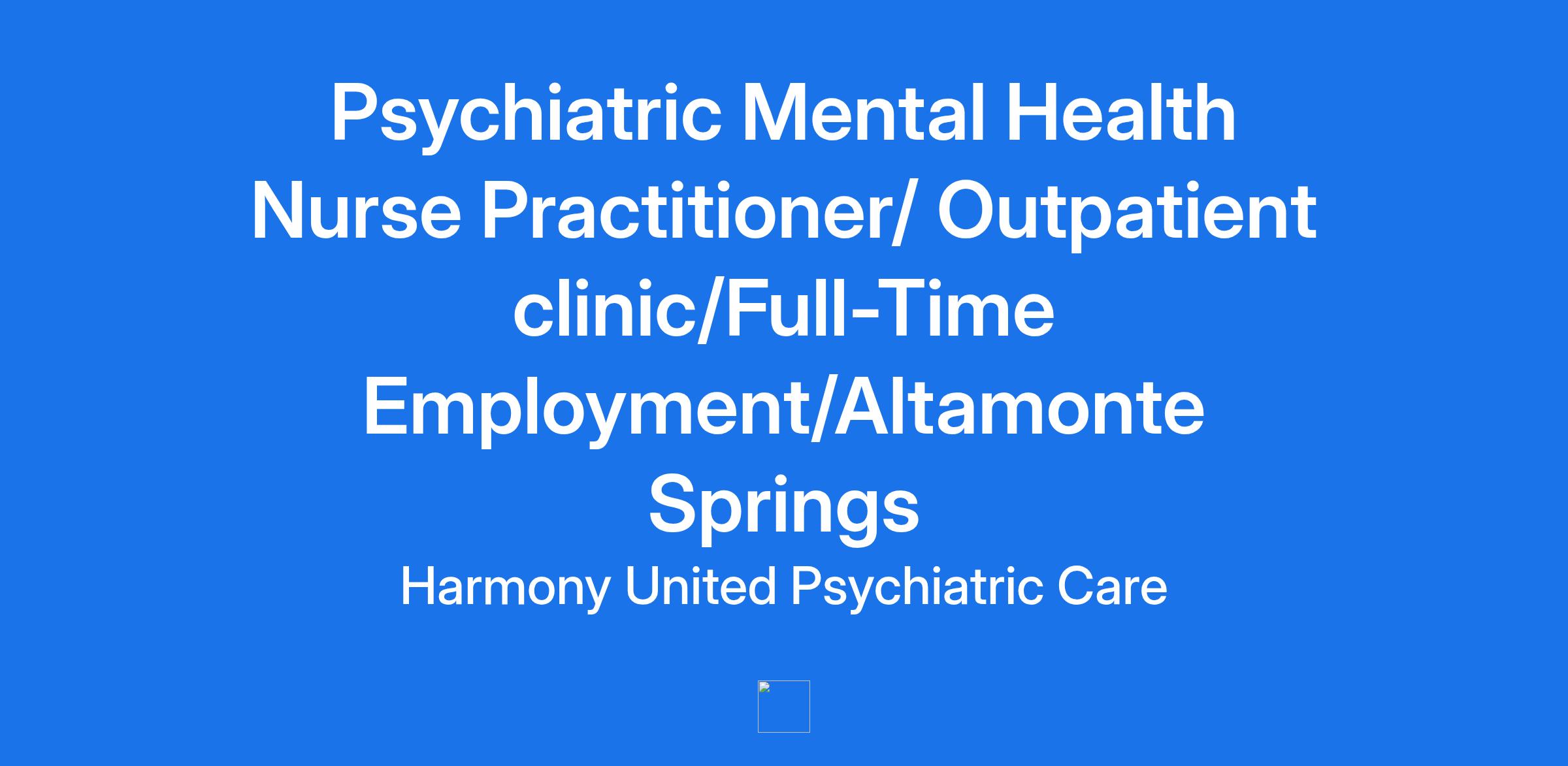 Job Title: Psychiatric Mental Health Nurse Practitioner/ Outpatient clinic/Full-Time Employment