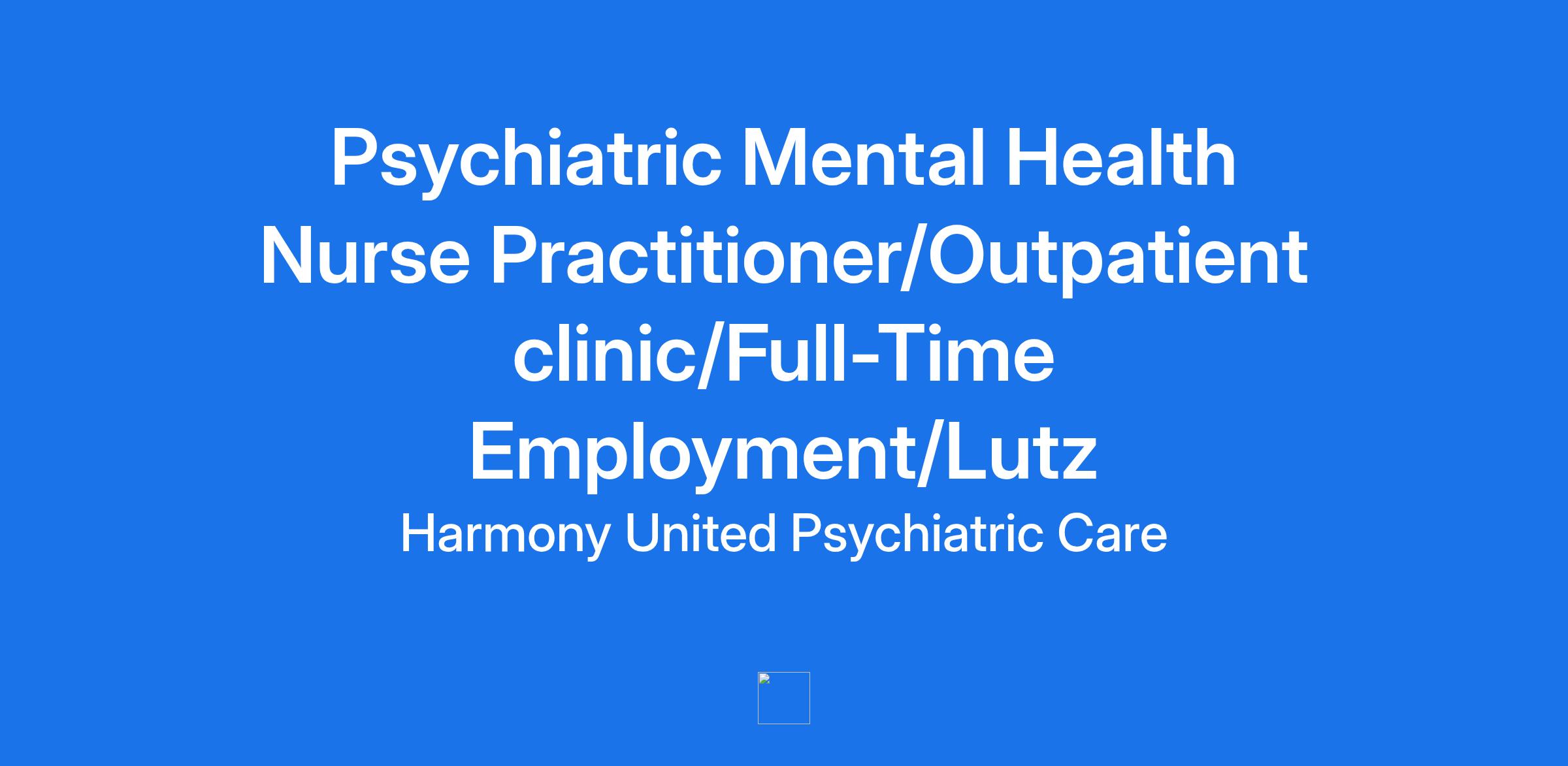 Job Title: Psychiatric Mental Health Nurse Practitioner/Outpatient clinic/Full-Time Employment