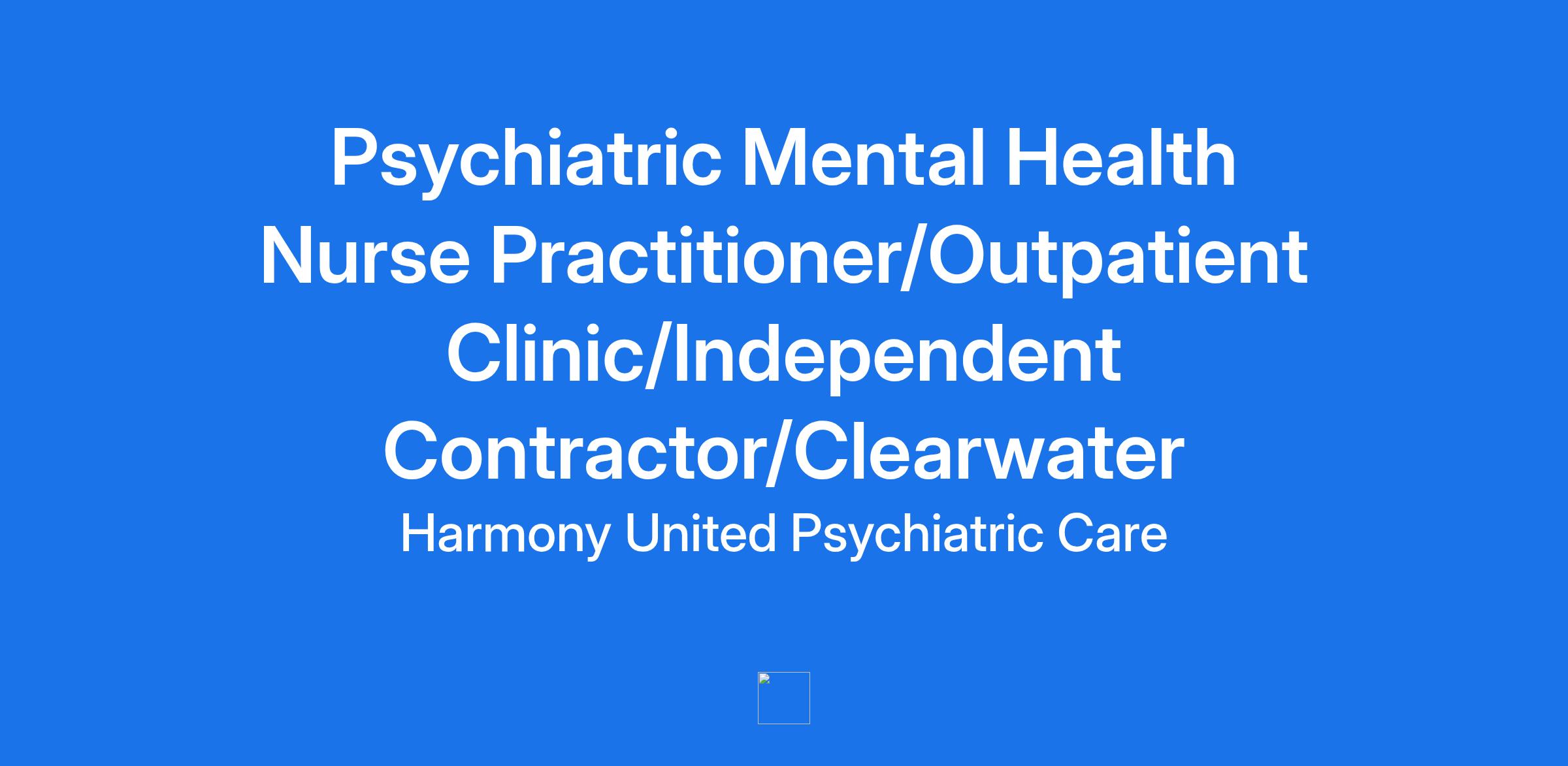 Job Title: Psychiatric Mental Health Nurse Practitioner/Outpatient Clinic/Independent Contractor