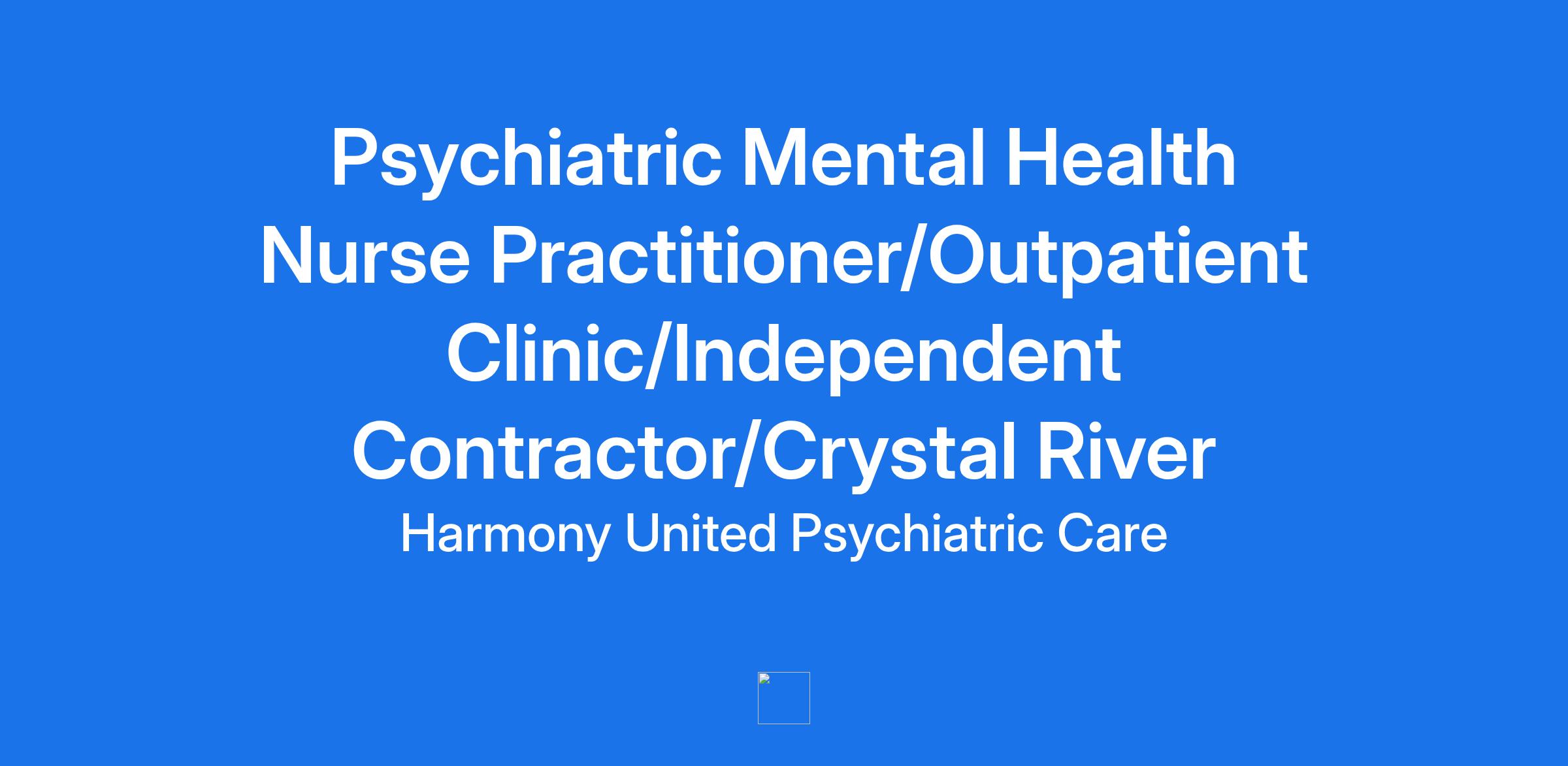 Job Title: Psychiatric Mental Health Nurse Practitioner/Outpatient Clinic/Independent Contractor