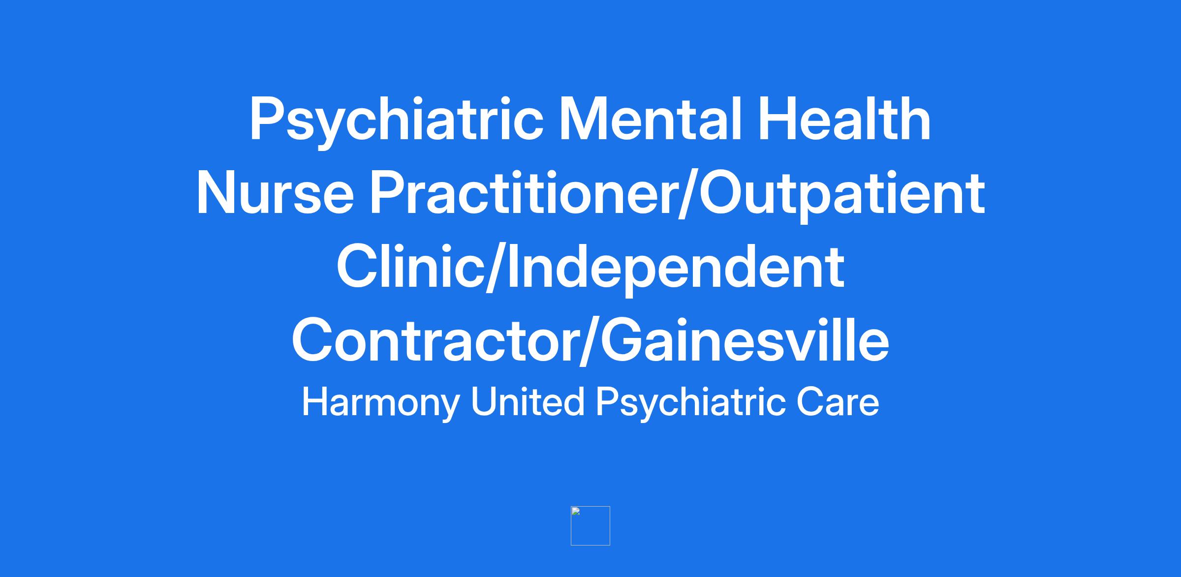 Job Title: Psychiatric Mental Health Nurse Practitioner/Outpatient Clinic/Independent Contractor