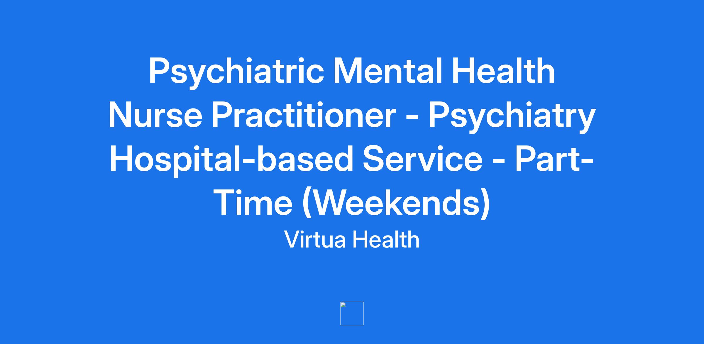 Psychiatric Mental Health Nurse Practitioner - Psychiatry Hospital-based Service - Part-Time (Weekends)