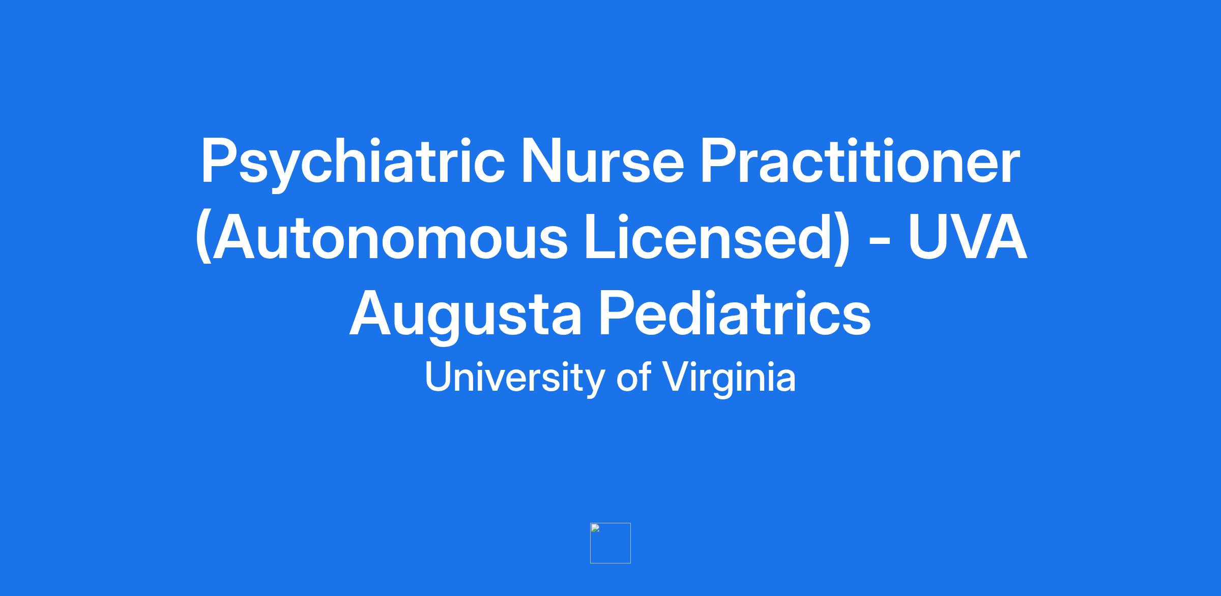 Psychiatric Nurse Practitioner (Autonomous Licensed) - UVA Augusta Pediatrics