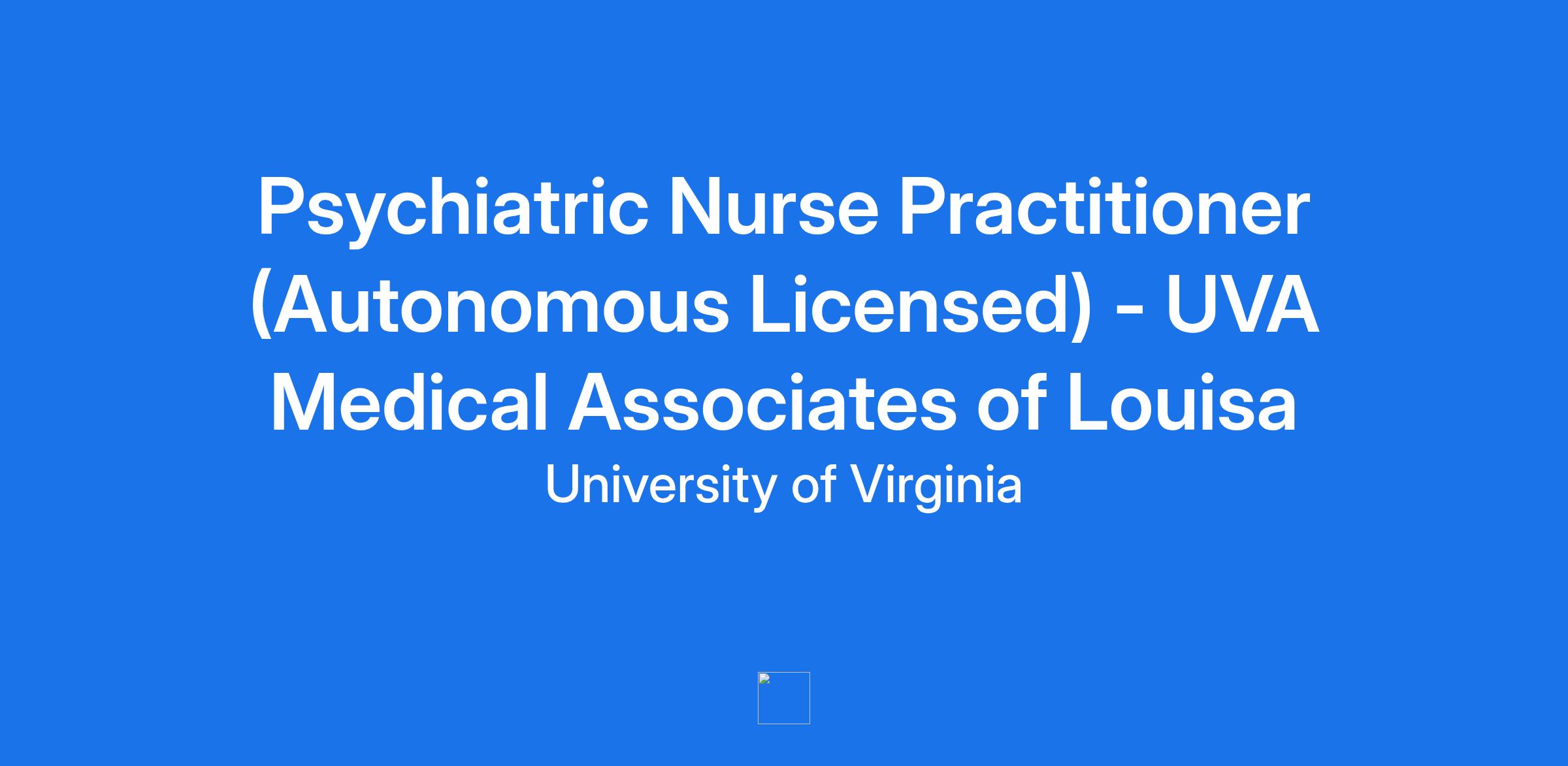 Psychiatric Nurse Practitioner (Autonomous Licensed) - UVA Medical Associates of Louisa