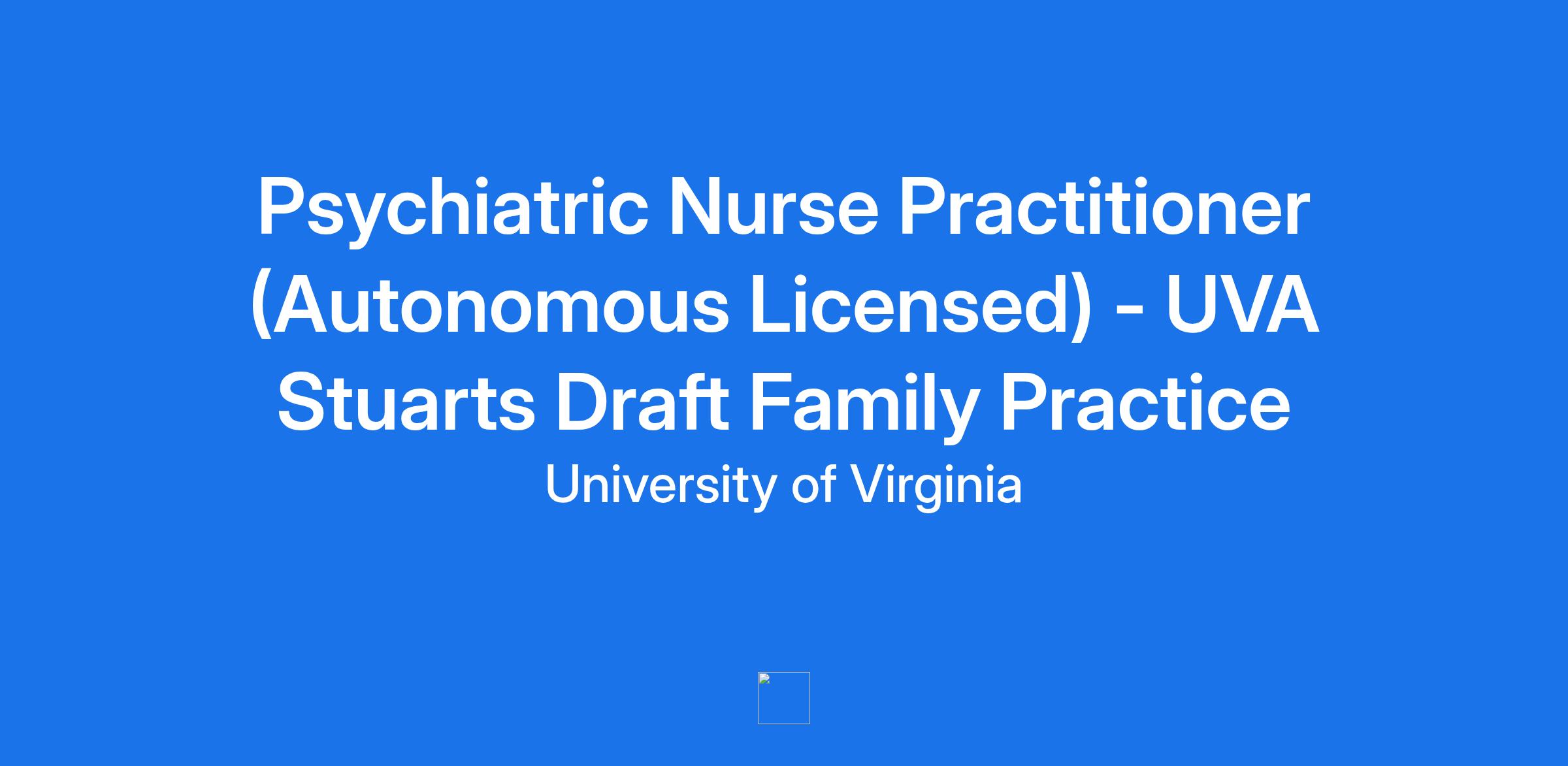 Psychiatric Nurse Practitioner (Autonomous Licensed) - UVA Stuarts Draft Family Practice