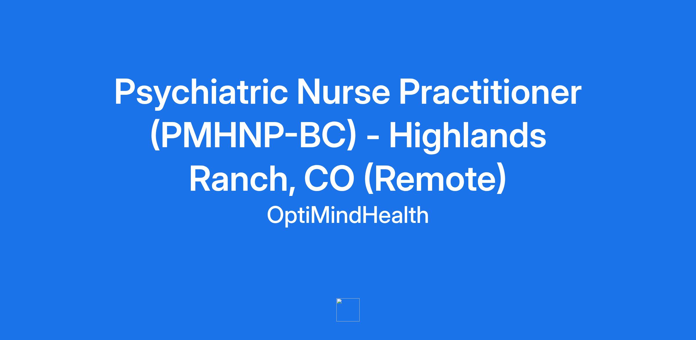 Psychiatric Nurse Practitioner (PMHNP-BC) - Highlands Ranch, CO (Remote)