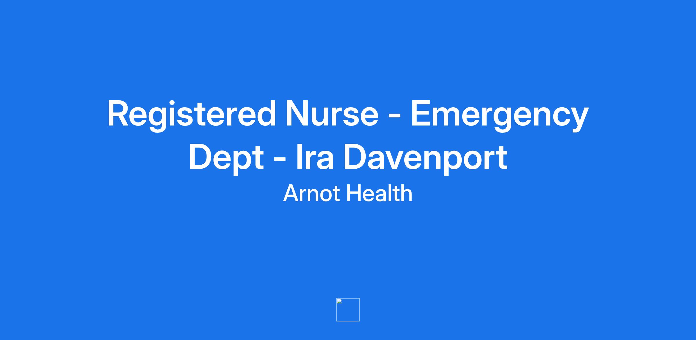 Registered Nurse - Emergency Dept - Ira Davenport