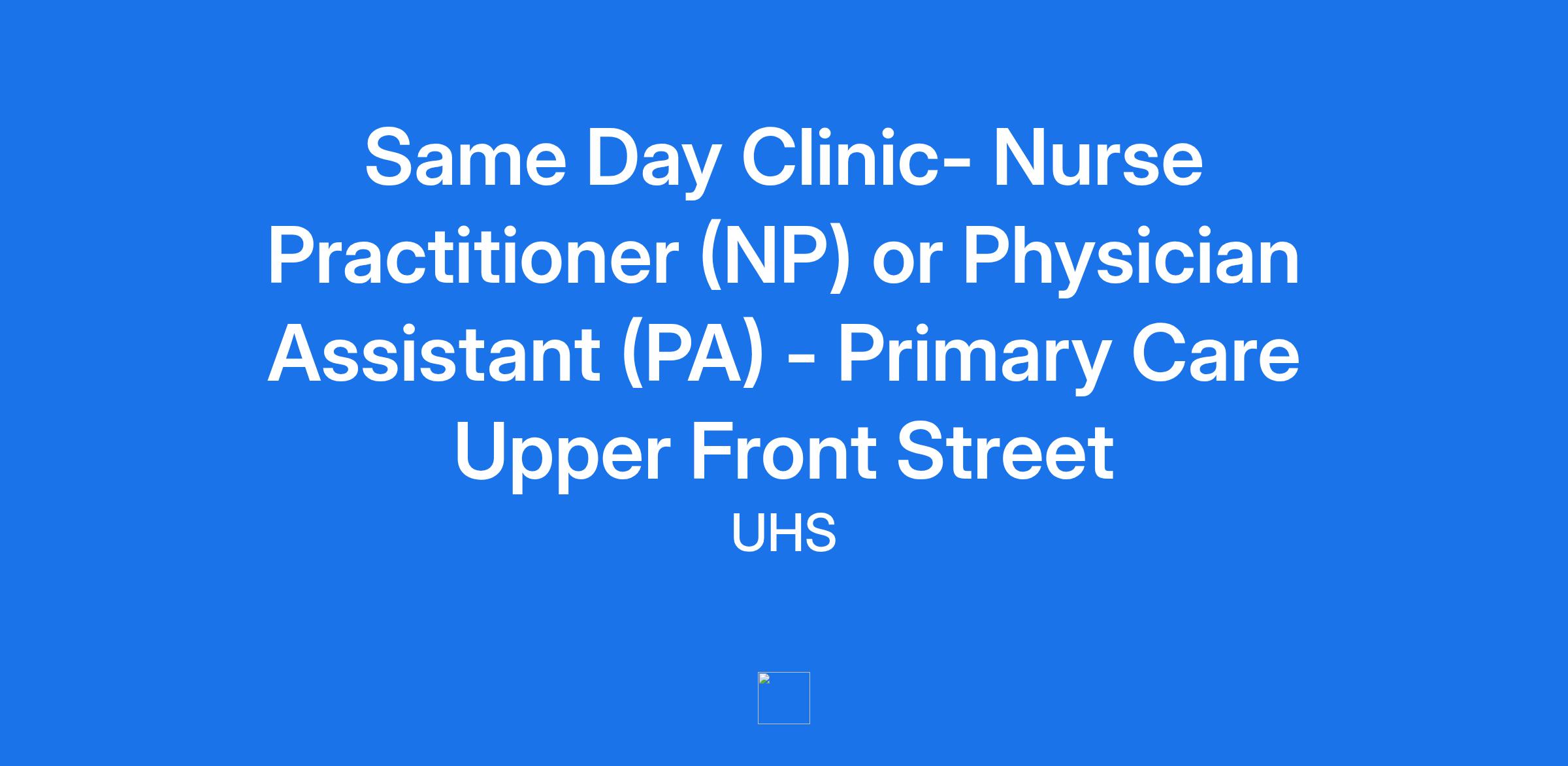 Same Day Clinic- Nurse Practitioner (NP) or Physician Assistant (PA) - Primary Care Upper Front Street