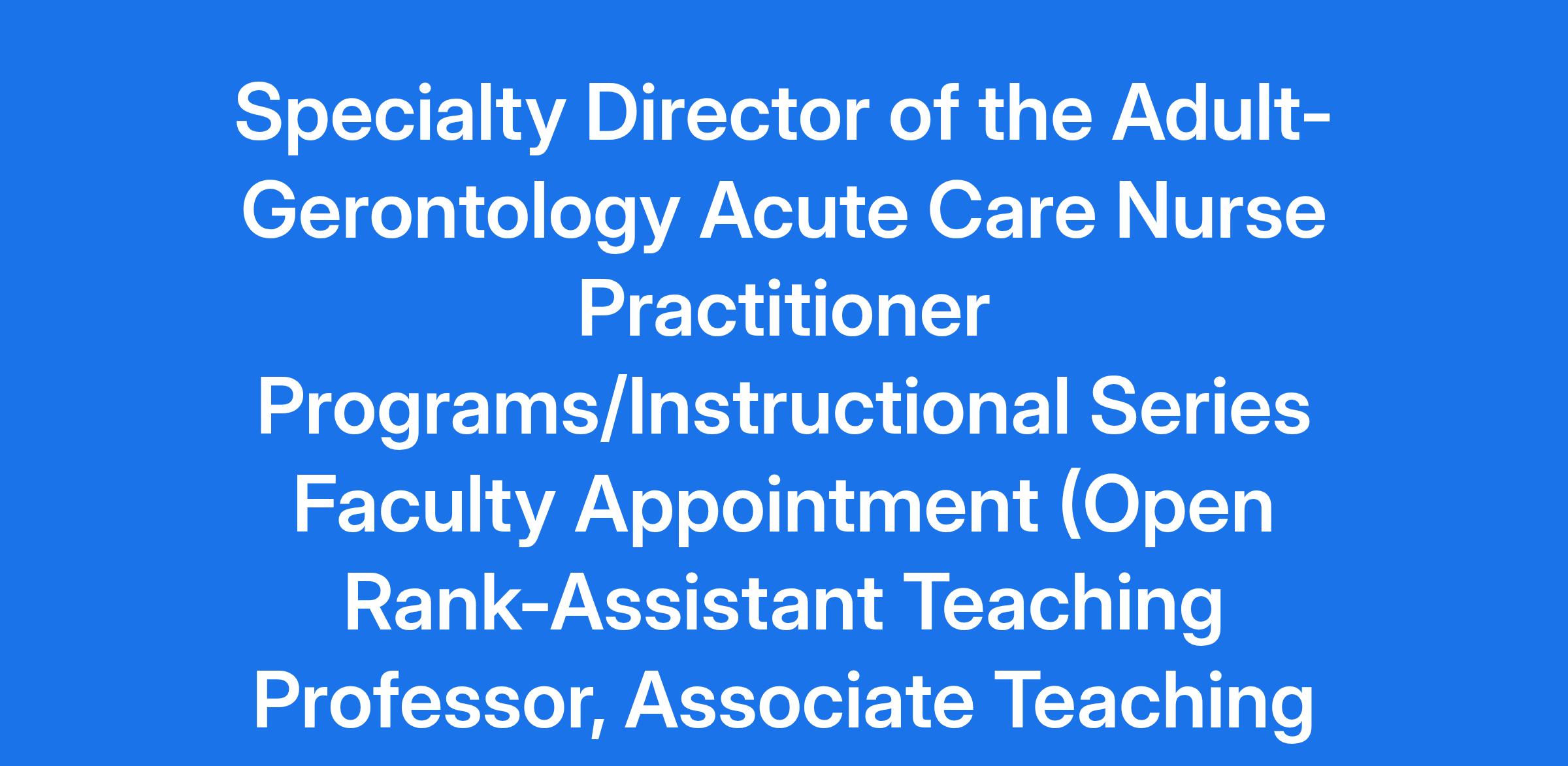Specialty Director of the Adult-Gerontology Acute Care Nurse Practitioner Programs/Instructional Series Faculty Appointment (Open Rank-Assistant Teaching Professor, Associate Teaching Professor, or Teaching Professor)