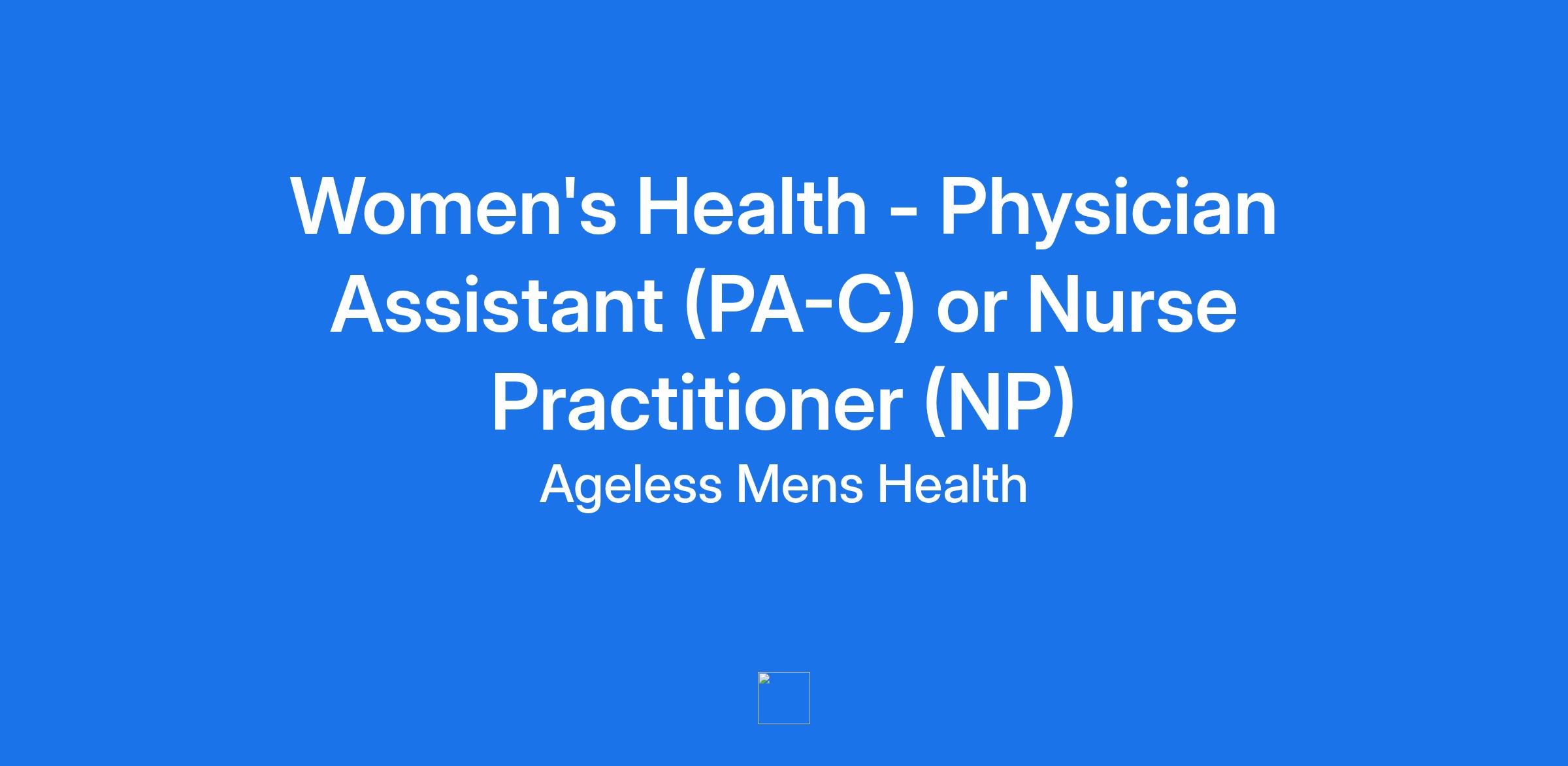 Nurse Practitioner (NP) or Physician Assistant (PA-C) – Women’s Health & Hormone Provider | Ageless Women’s Health